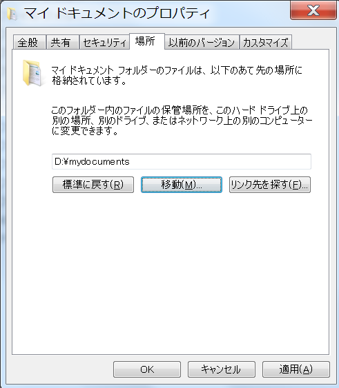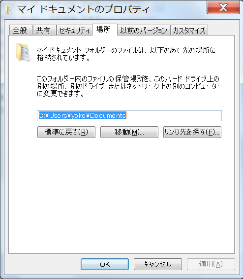 マイドキュメントの場所が表示されます。