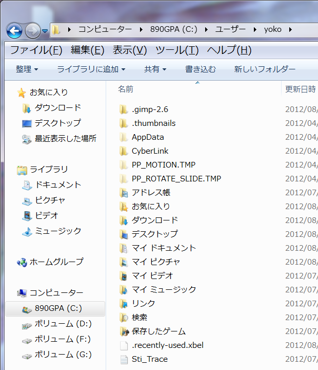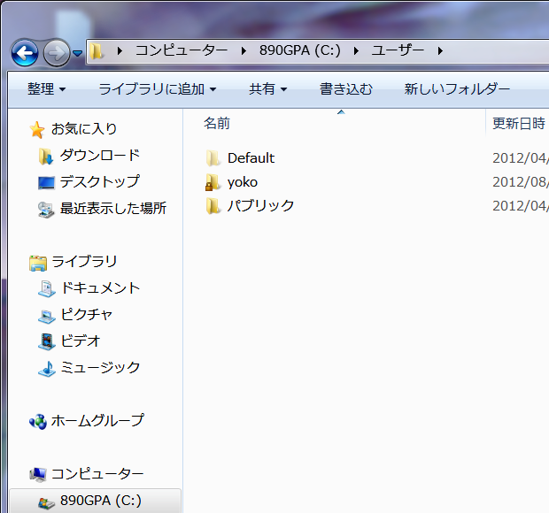 次にユーザーフォルダを開いて見ましょう。