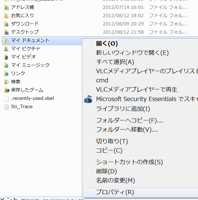 まずはマイドキュメントを右クリック。