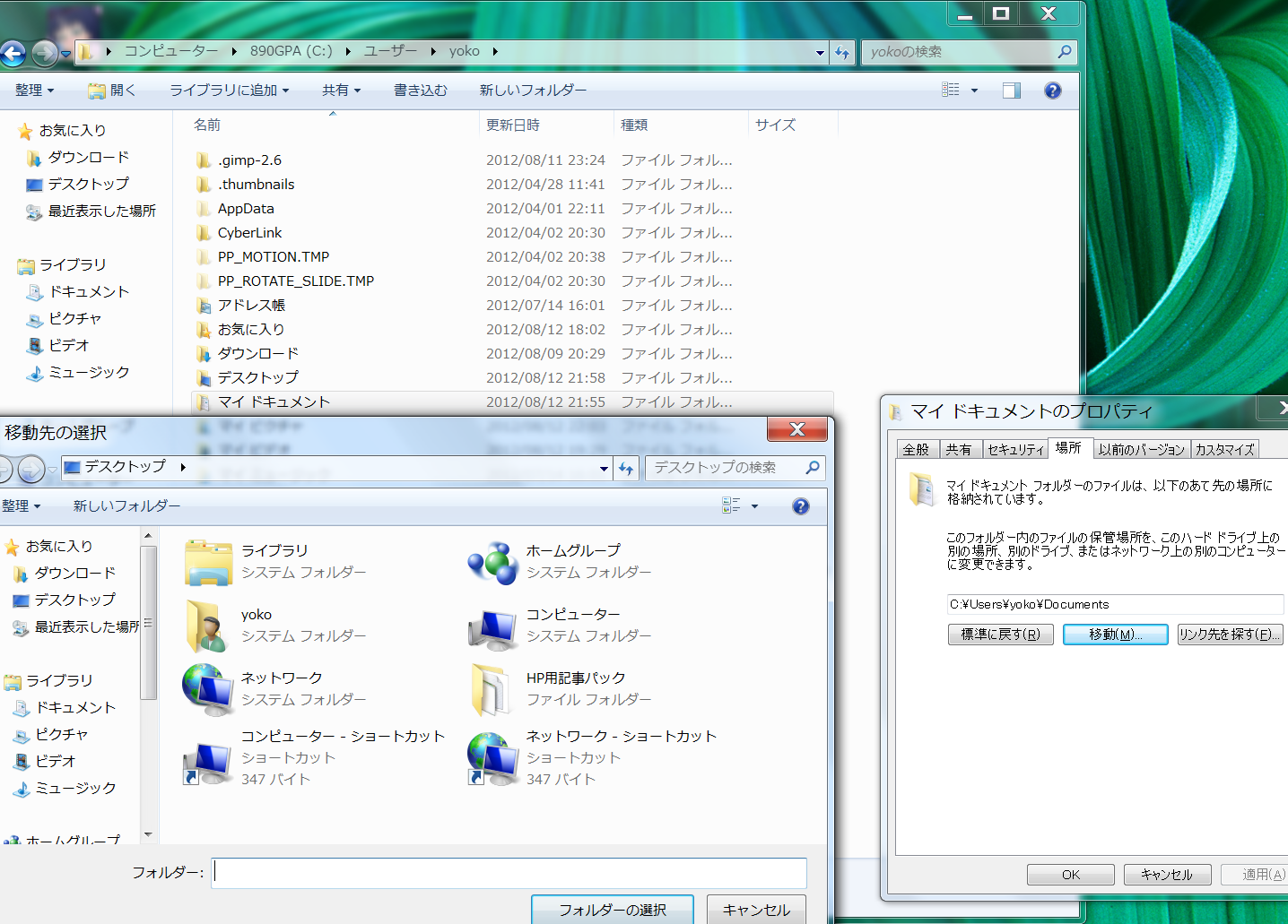 これでマイドキュメントがCドライブのユーザーフォルダから